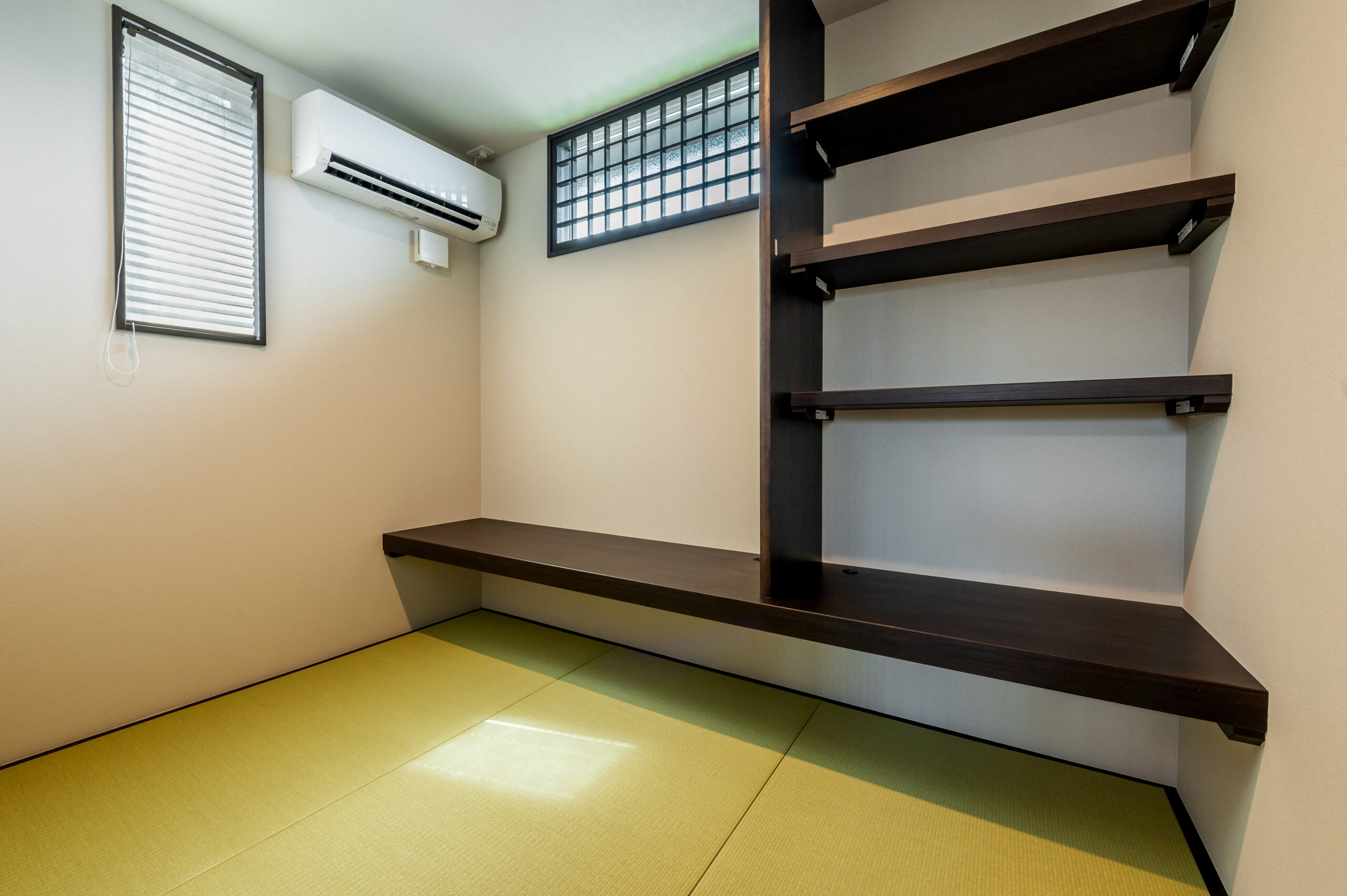 また、ご主人様こだわりの2階の書斎も特別な空間です。和室の落ち着いた雰囲気の中で、ゆっくりと自分だけの時間を過ごせるように設計しました。
