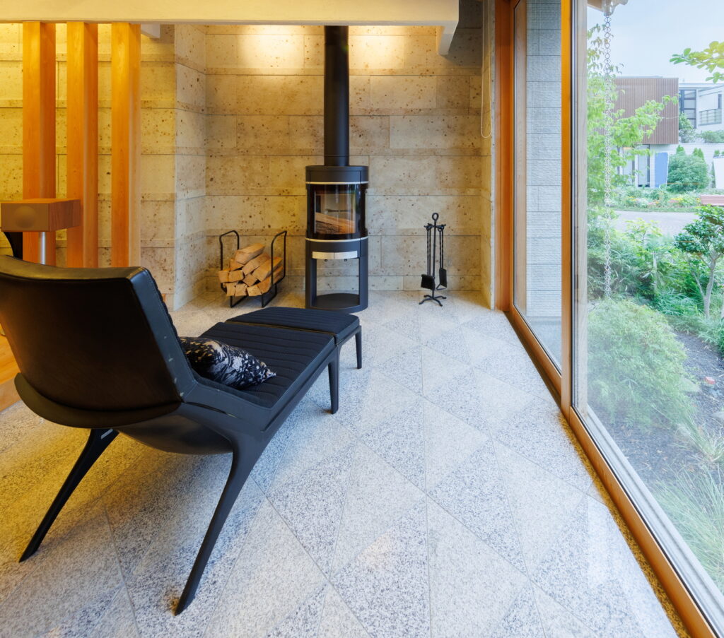 石の陰影が映え、空間全体に豊かな表情をもたらします。