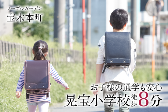 晃宝小学校まで徒歩8分(約600m)、閑静な住宅地