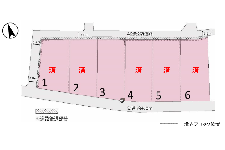 南側/公道 約4.5m、西・北側/42条2項道路 約3.3~4.6m